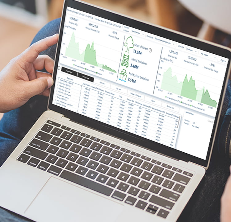 Verfolgen und vergleichen Sie Ihren CO₂-Ausstoß bei allen Luftfrachtsendungen, Voll- (FCL) und Teilcontainerladungen (LCL) im Zeitverlauf. Erreichen Sie damit Ihre Nachhaltigkeitsziele in der Lieferkette.