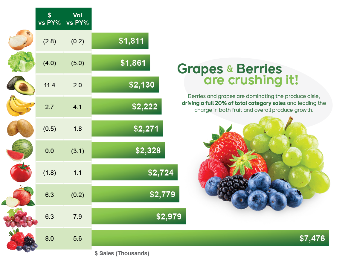 • Fruit continues to shine: Leading the charge, the fruit category posted a robust 6.5% sales increase