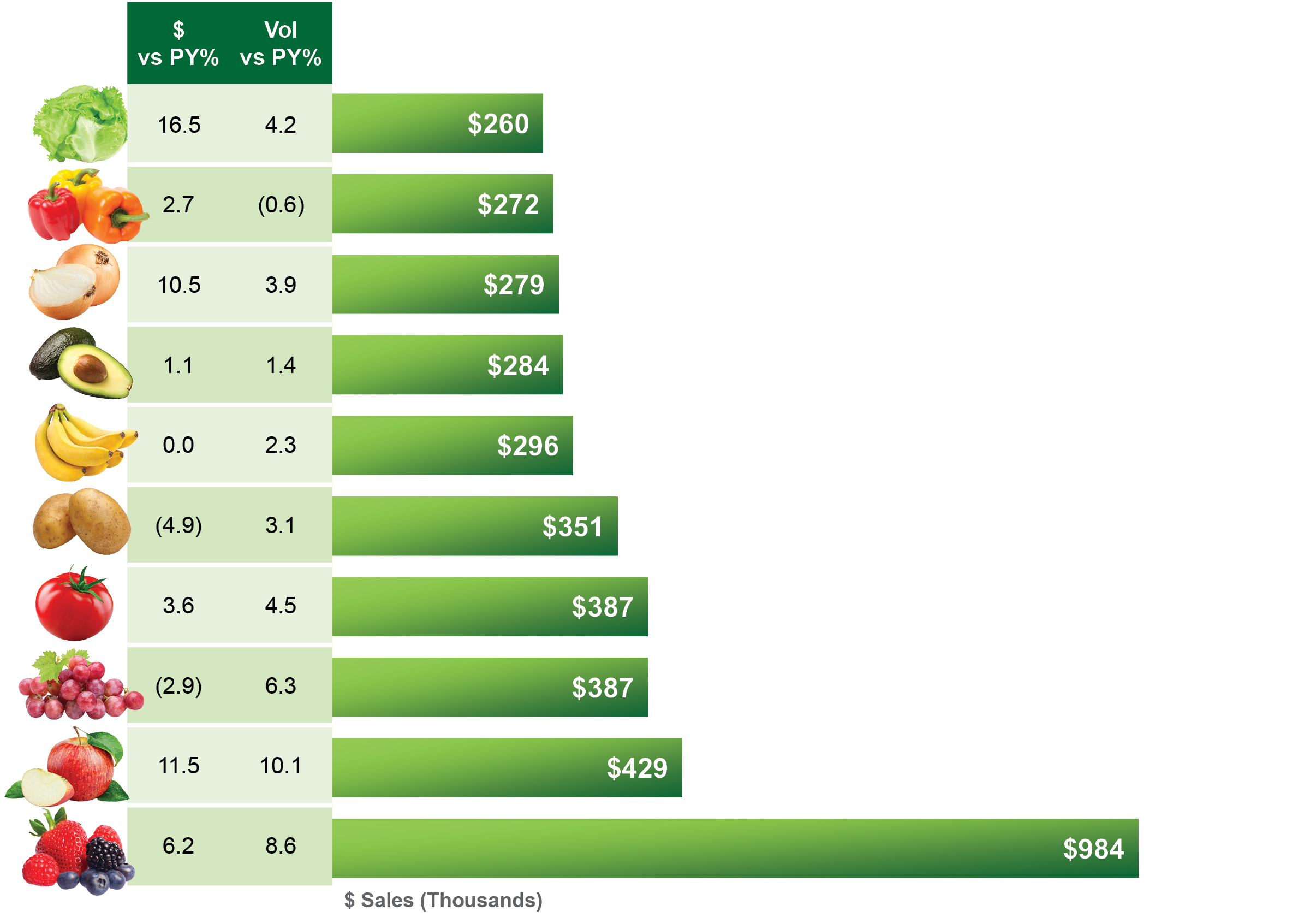 • Fruits outperformed vegetables again, but vegetables have shown steady growth.