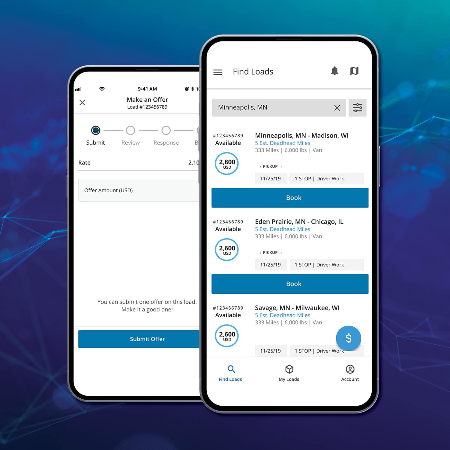 • Faites des offres instantanément. Passez moins de temps à négocier vos offres sur les chargements qui vous intéressent le plus.
