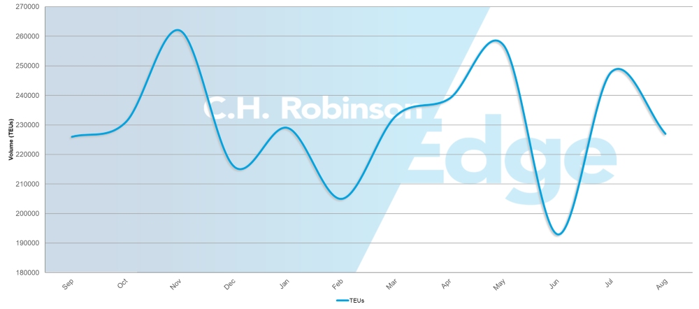 Previsão: A capacidade limitada durante o quarto trimestre provavelmente manterá as taxas estáveis, apesar das pressões contínuas do mercado. As restrições de capacidade do USWC para carga seca diminuíram recentemente, embora a carga refrigerada permaneça restrita até o final de outubro. As rotas da USEC continuam mais facilmente disponíveis.