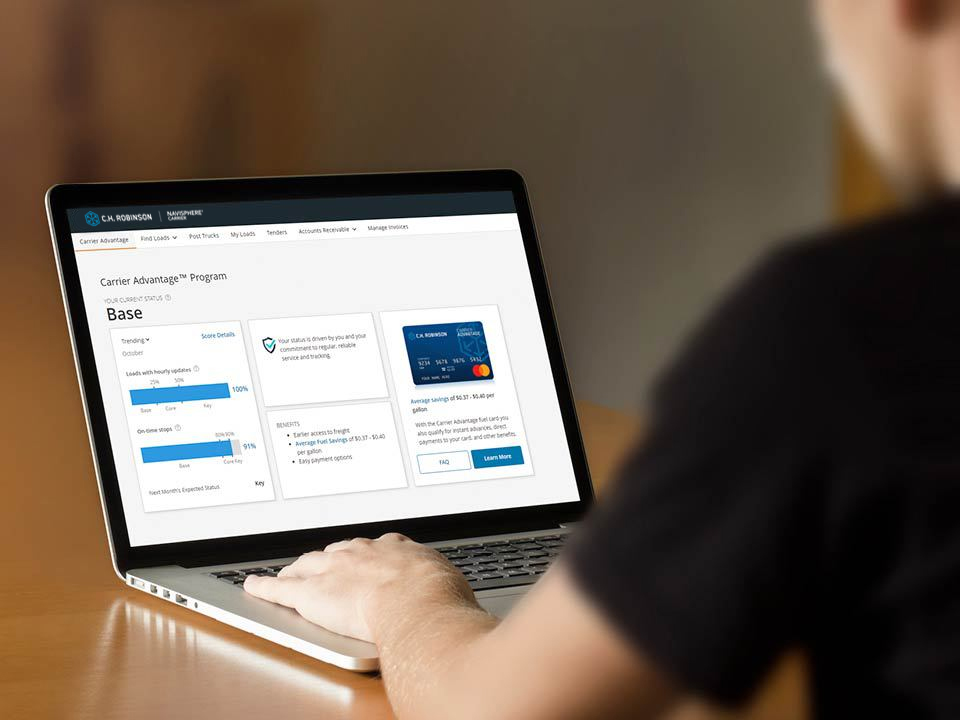 申請成為 C.H. Robinson 貨運公司就等於同時加入我們的 Carrier Advantage™ 計畫,但您能得到的福利取決於您的努力。準時報到並且在運輸途中每小時自動回報最新消息,就能盡量拉高您可以得到的獎勵。如果想繼續載運您想載運的貨物、加油時每加侖平均節省 37-40 美分*,以及享有 QuickPay 選項折扣,能否提供一流的服務品質是關鍵。
