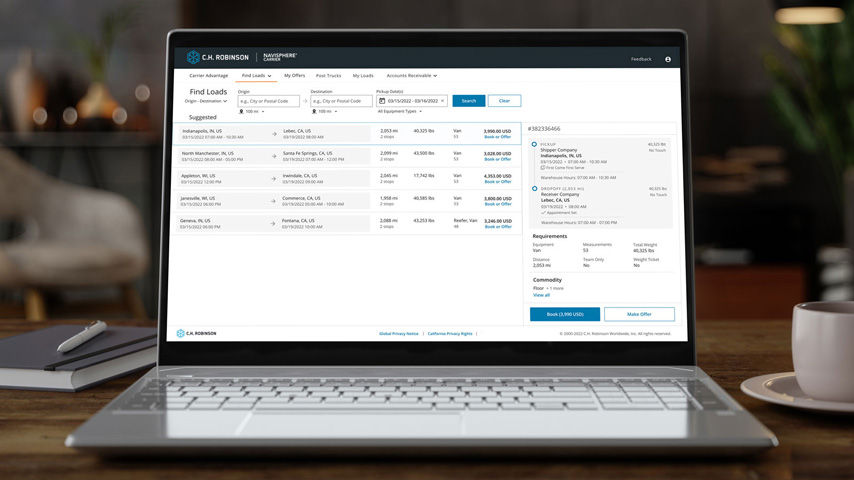 Seamlessly manage your operations—find, book, and track loads—whether you’re at your desk or on the go. Stay flexible and in control with Navisphere® Carrier.